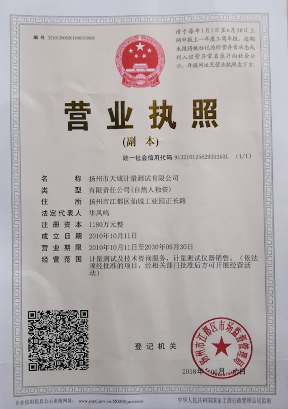 揚(yáng)州市天域計(jì)量測(cè)試有限公司,坐落在交通便利的揚(yáng)州市江都區(qū)仙城工業(yè)園,成立于2010年10月,2011年11月正式獲取中國(guó)合格評(píng)定國(guó)家認(rèn)可委員會(huì)認(rèn)可(授權(quán)),注冊(cè)號(hào):CNAS L5296。近幾年的發(fā)展,實(shí)驗(yàn)室已具備了較大規(guī)模,并形成了集計(jì)量器具檢測(cè),計(jì)量技術(shù)咨詢(xún)和計(jì)量器具銷(xiāo)售為一體的專(zhuān)業(yè)化技術(shù)機(jī)構(gòu),客戶(hù)覆蓋蘇南、蘇北、和浙江,安徽部分地區(qū),客戶(hù)群總量達(dá)到了上千家企事業(yè)單位。實(shí)驗(yàn)室建立健全了一套較為完整的內(nèi)外部質(zhì)量管理體系,至今未發(fā)生糾紛和客戶(hù)投訴事件。